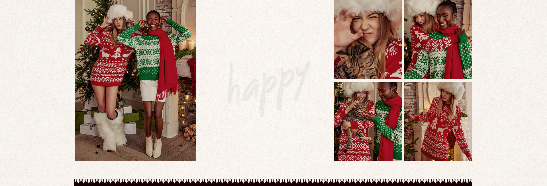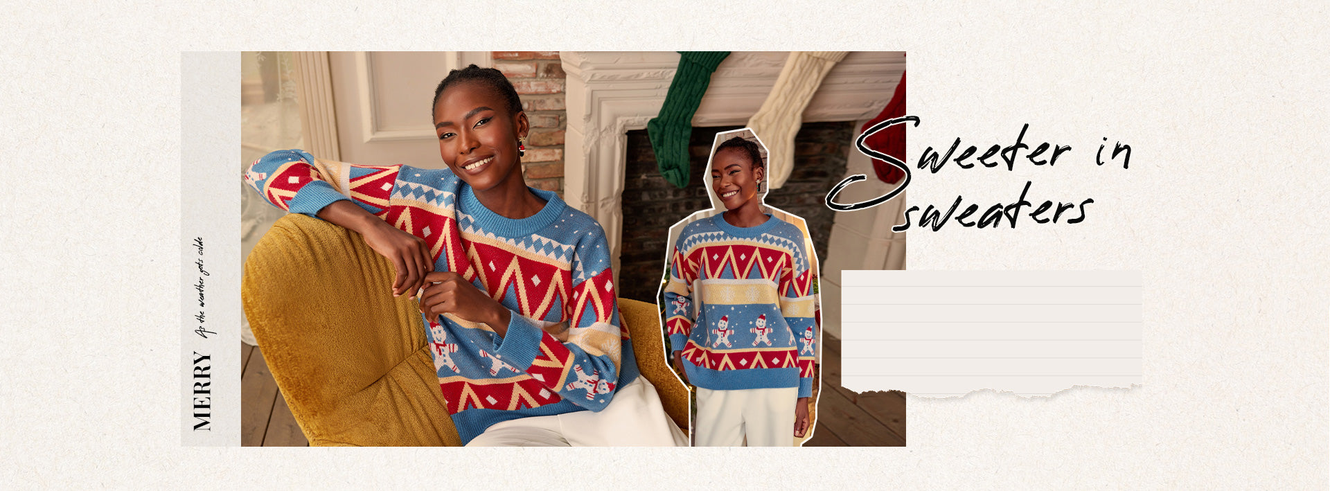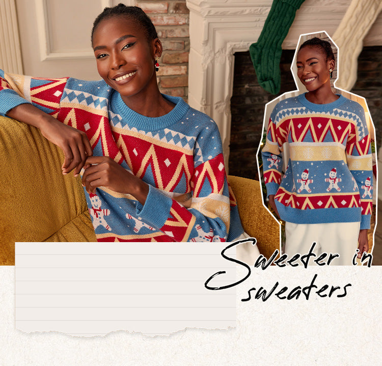 Feel the holiday cheer! Enjoy the eve of Christmas wearing holiday-themed, graphic knits. Make memories that will last a lifetime in joyful sweaters and delightful knit dresses.