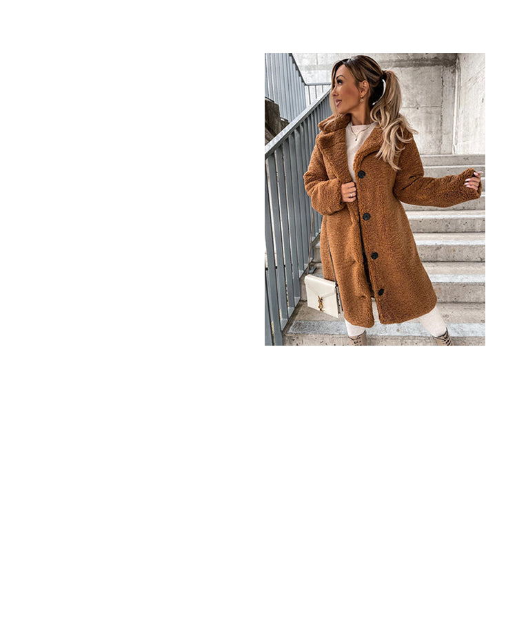 Its furry inside and long sleeves will make you stay warm and cozy in cold weather, and the front button style is the perfect classiness your fashion clothing requires. This Teddy Jacket is made of 100% pure polyester, making you cozy without feeling any itchiness on your skin. Its casual style is perfect to wear in daily life as well as on special occasions, and to be available in such a beautiful color range from brown, beige, camel to coffee, is just like sugar on the top.
