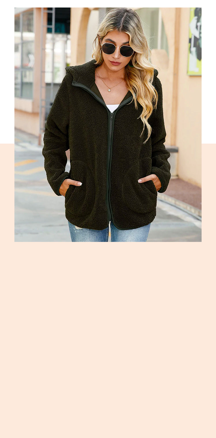Fashion girls always face problems when it comes to their winter hoodies, whether it might be the hoodie is not soft enough or not fashionably attractive. With this Zip Hooded Drawstring Teddy Coat from Zeagoo store, say goodbye to all of your worries regarding hoodies. Its warm feathery inside will ensure to keep you cozy in chilly weather while its army green color is a perfect fit to go with any type of dressing. It is made up of 100% pure polyester lightweight material and is 100% washable which means you don’t have to worry about changing your hoodie because it looks too old just after a few washes.