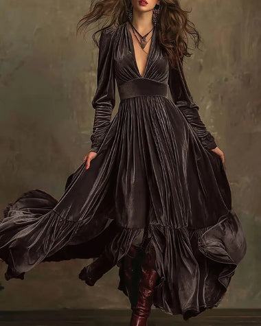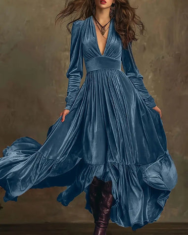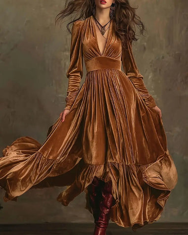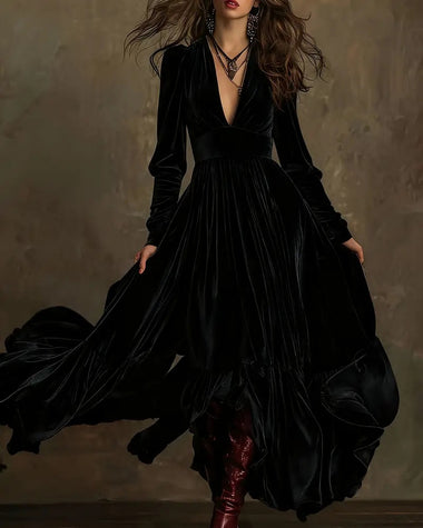 Fashionable Velvet Ruffled Hem Maxi Dress