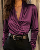 Luxurious Satin Deep V-Neck Long Sleeve Blouse