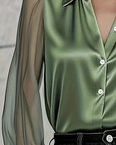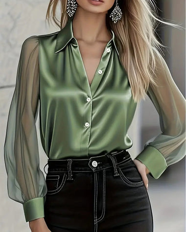 Luxury Sheer Sleeves Patchwork Silky Satin Blouse