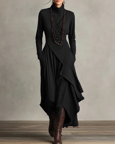 Quiet Luxury Asymmetric Cut Draped Maxi Dress