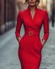 Smart Casual Tailored Wrap Midi Dress with Belt
