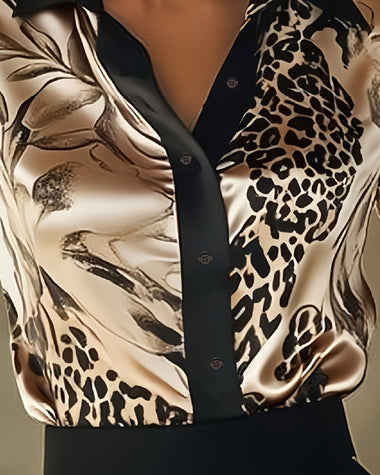 • Design: Unique plant and leopard print, long sleeves, button down, contrast collar