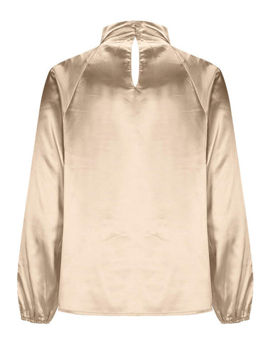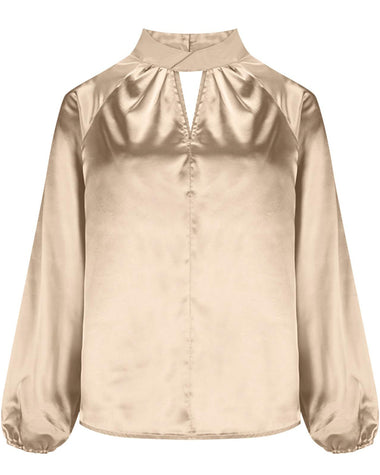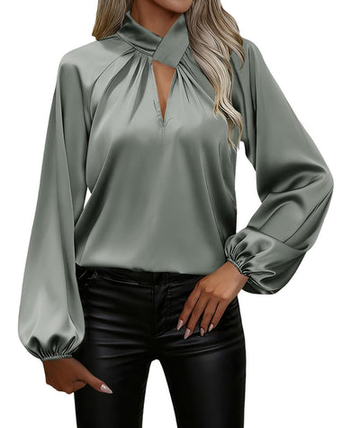 Elegant Satin Stand Collar Lantern Sleeve Blouse