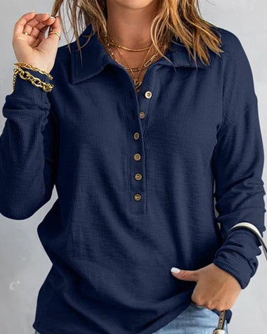 • Features: Long sleeve, lapel collar, half button front