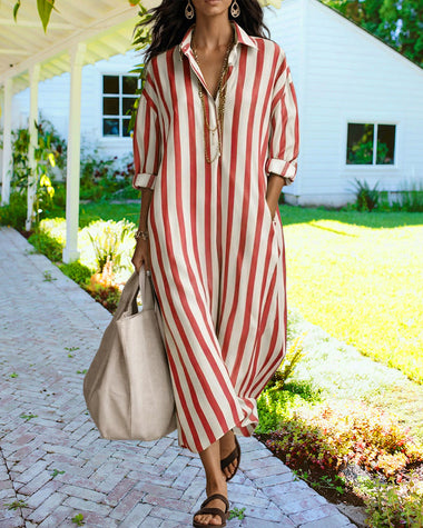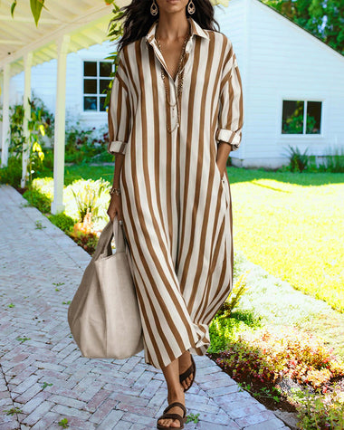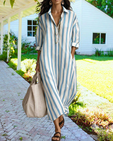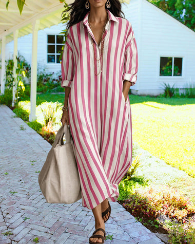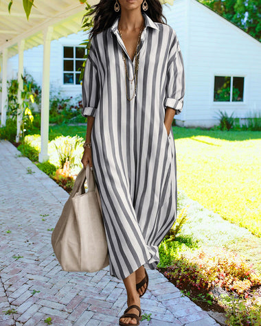 Casual Striped Loose Fit Maxi Shirt Dress