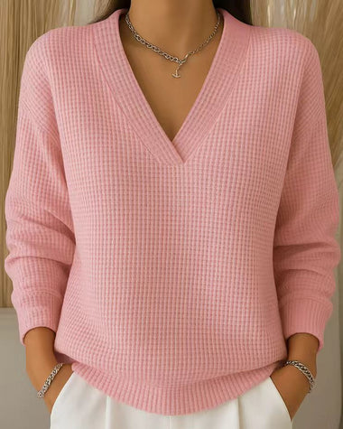 Casual Waffle V-neck Loose Fit Top