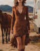 Boho Western Ruffle Trim Suede Dress
