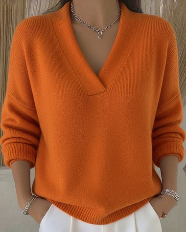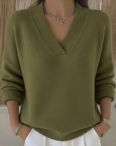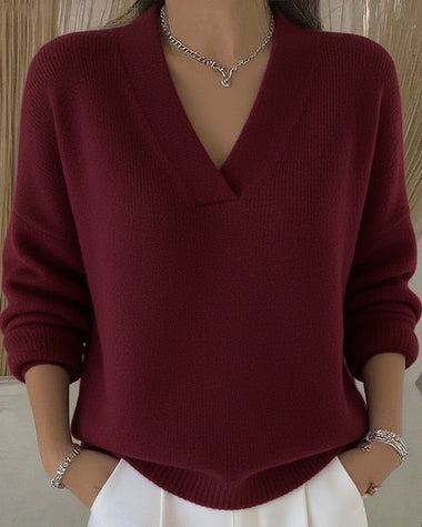 Classic Solid Loose Fit V-neck Sweater