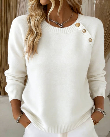 Cute Slant Placket Heart Button Sweater