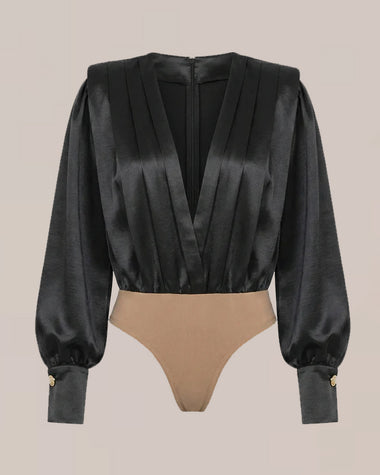 • Design: Instant glam with a flattering high waist, pleated front, and drapey palazzo legs. Statement puff sleeves with gold-button cuffs plus functional pockets.