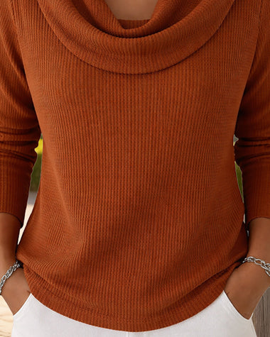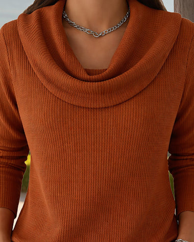 Fashion Cozy Fit Waffle Cowl Neck Top