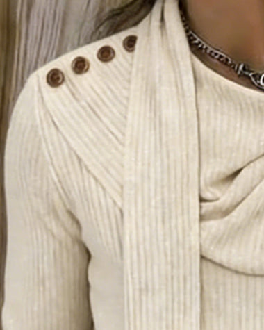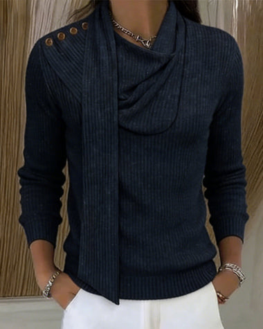 Fashion Scarf-Decorated Stack Collar Knit Top