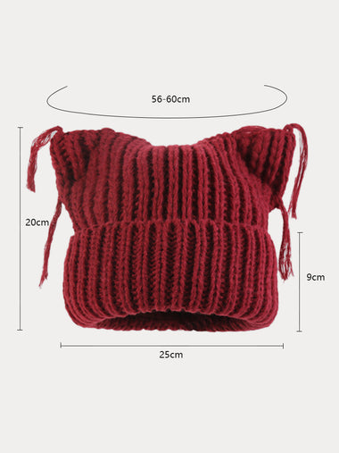 Unique Cats Ear Tassels Knit Beanie