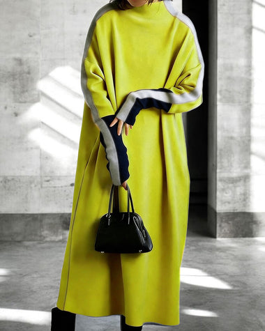 Cozy Vibrant Colorblock Mock Neck Maxi Dress