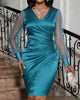 Elegant Satin Mesh Sleeve Ruched Wrap Dress