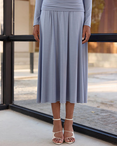 Effortless Style Draped Wrap Top and Midi Skirt Set
