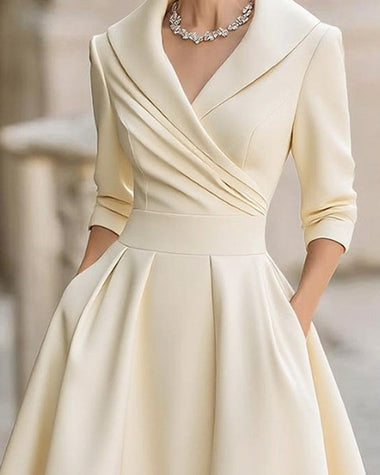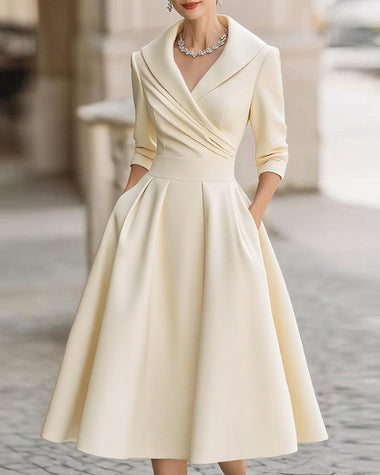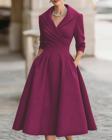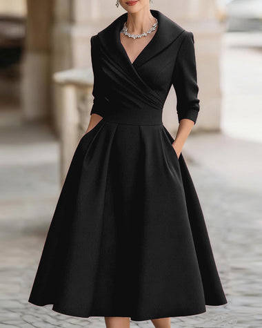 A-Line Silhouette Midi Dress with Pockets