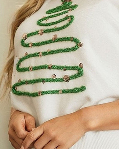 Cozy Christmas Tree Graphic Short Sleeve Sweater