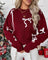 • Design: The round neck design features an all-over white bow jacquard print, evenly distributed, highlighting sweet elements and creating a contrasting effect against the burgundy background. The loose, drop-shoulder silhouette further enhances the look.