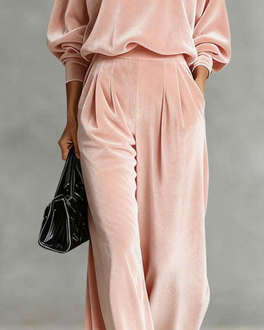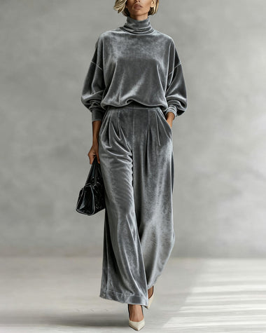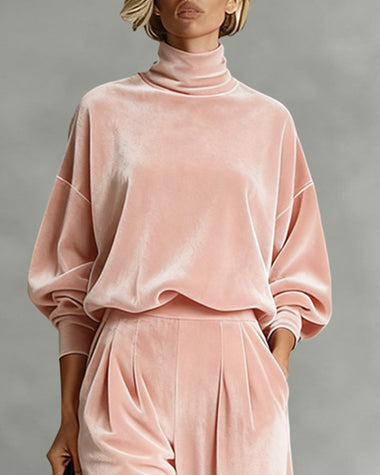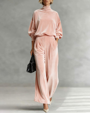 Leisure Relaxed Velvet Turtleneck Top Pants Set