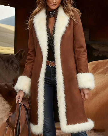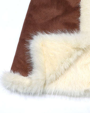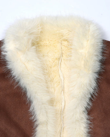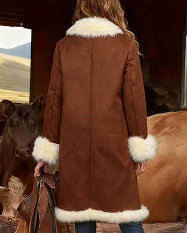 Vintage Cowgirl Style Fleece Trim Suede Coat