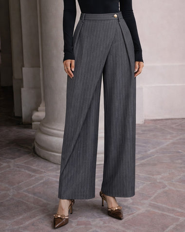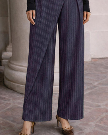Business Casual Pleated Pinstripe Wide Leg Pants