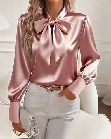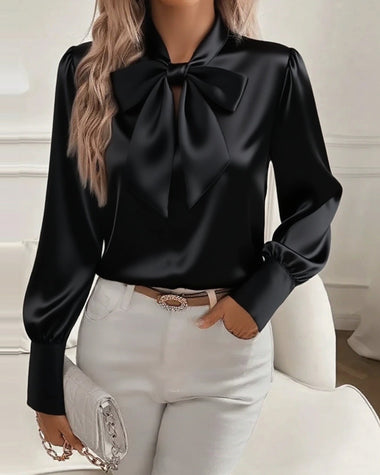 Elegant Dressy Bow Tie Neck Blouse
