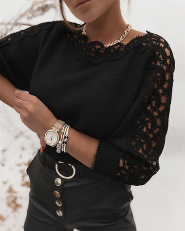 • Design: Delicate lace trimming along the neckline and sleeves, ribbed cuffs and hem