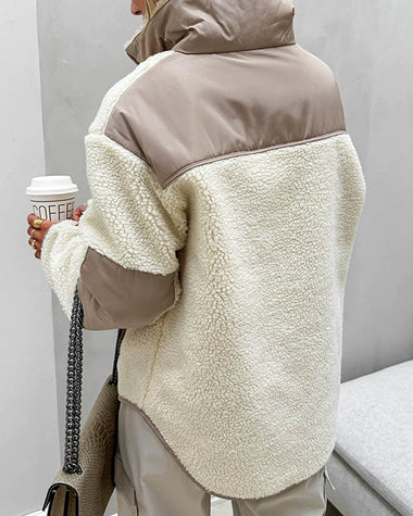 • Design: Stand collar, zip closure, colorblock design, curved hem, hand pockets