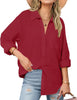 • Dressy Causal Long Sleeve Blouses - Full button down closures, casual cuffed long sleeves, tuckable curved hem, collared v neck, which can be your casual top for hanging around town, or works well for travel because of the versatility to tuck in or wear it open as a spring/summer/fall light layer.