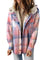 Womens Plaid Shacket Jacket Long Sleeve Button Down Fleece Hooded Jackets Warm Coat