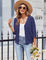 Features: This knitted open front cardigan shrugs features with attractive hollow out crochet patterned, v neck, 3/4 sleeve, button-down, solid color, ribbed hem. Easily create elegant fashion and casual look!