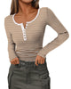 Slim Button Ribbed Knit Basic Tee Henley T Shirt (US Only)