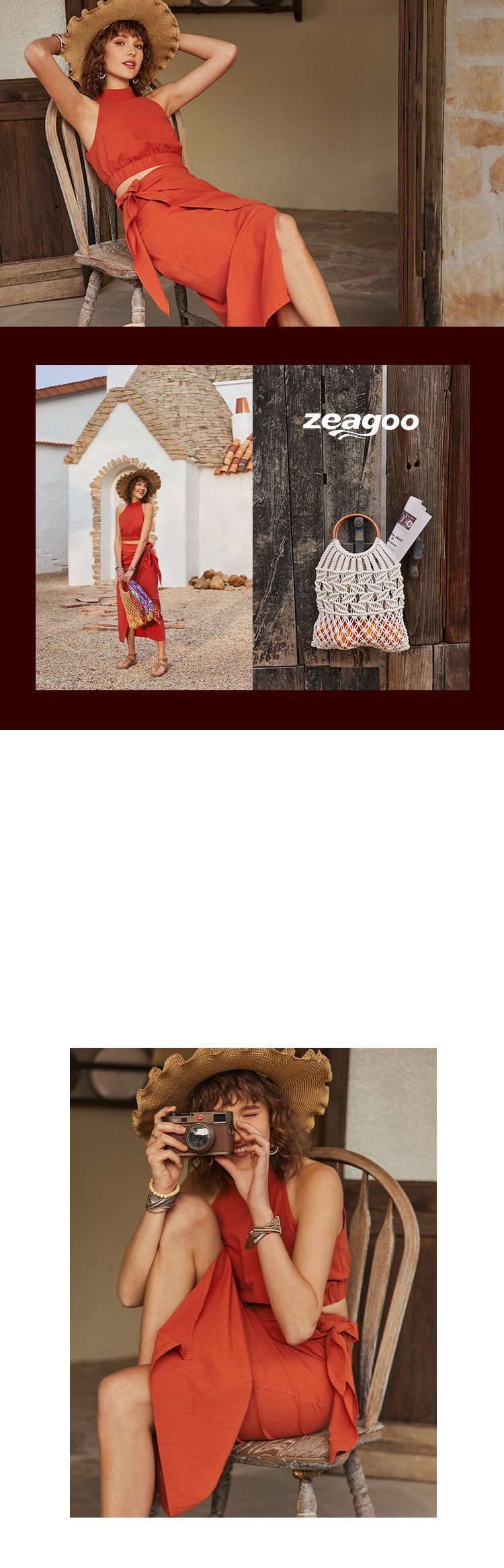 Keep your style solid in a solid colored skirt set. While the ensemble may be print-less, it’s far from subdued. The chic, burnt orange separates will add that extra fire to your vacation outfit. You can wear the halter top and sarong style, wrap skirt whether you’re exploring a new city or strolling along a boardwalk. Before you go on any trip, visit Zeagoo for all your holiday fashion needs.