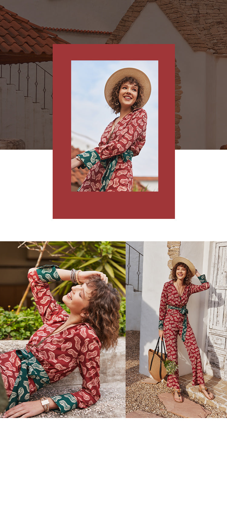 A matching blouse and skirt set delivers the dreamiest vacation vibe.