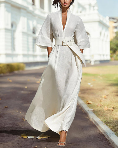 Minimalist 3/4 Sleeve Maxi Dress with Belt