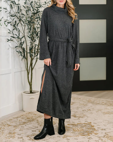 Soft Feel Tie Waist Knit Midi Dress