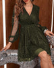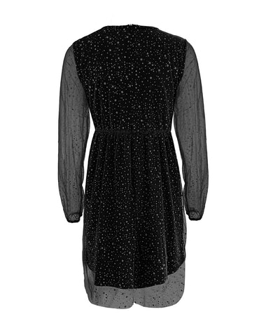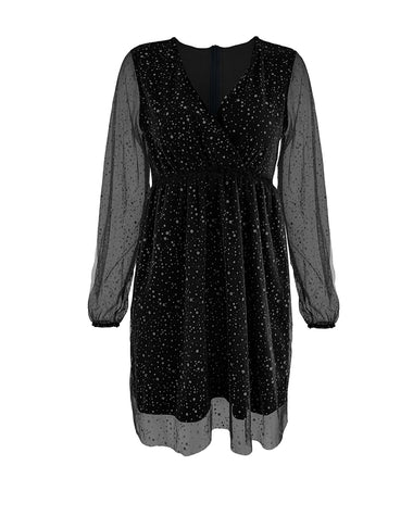 • Design: Deep v-neck, mesh puff sleeve, A-line design, cinched waist