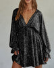 • Design: Long sleeves with ruffled cuffs, A-line design, deep v-neck