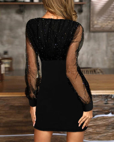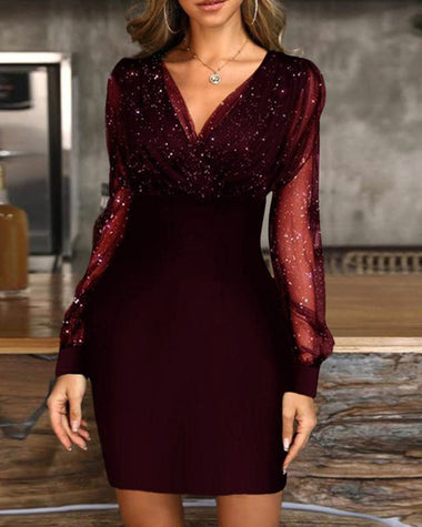zeagoo.com/de/collections/dress/products/sparkle-glitter-mesh-v-neck-dress