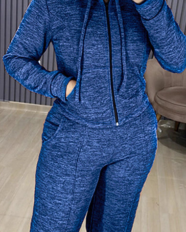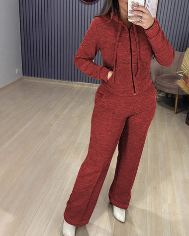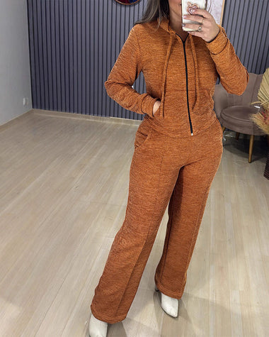 Athleisure Hooded Jacket Wide Leg Pants Set