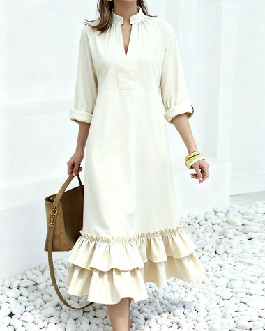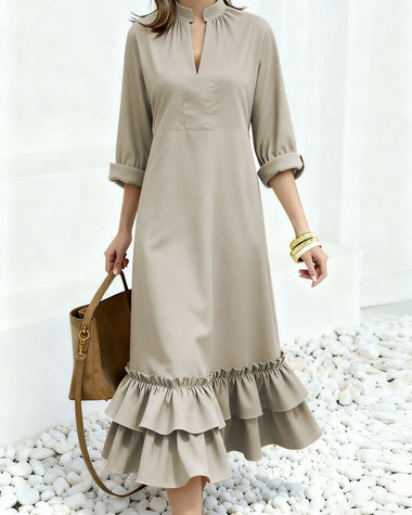 • Design: Long sleeves, v-neck, ruffle hem