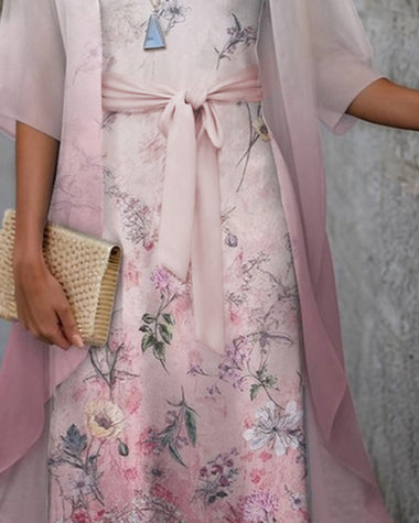Casual Floral Printed 2-Piece Dress Set