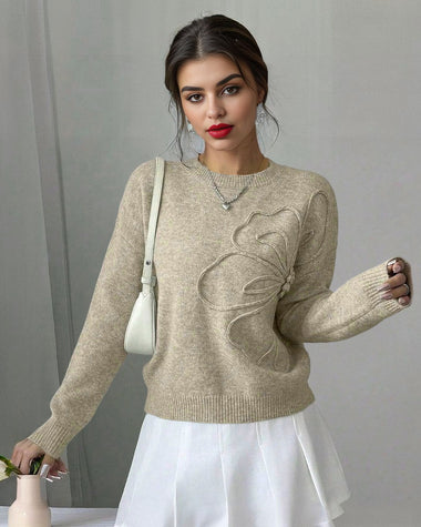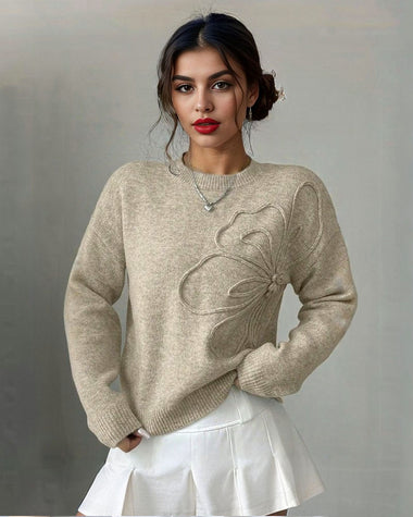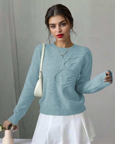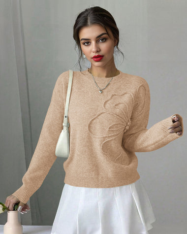Chic Dimensional Floral Knit Sweater
