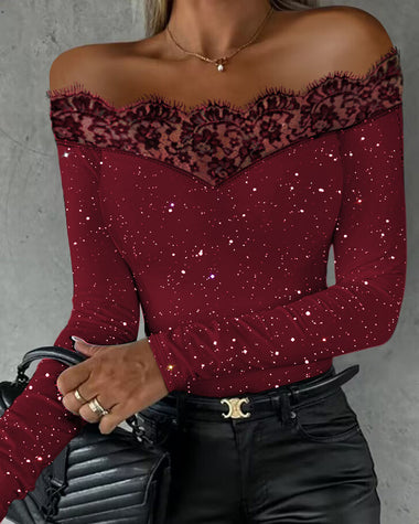 Glitter Off Shoulder Lace Spliced Top