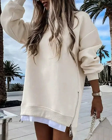 • Design: Long sleeves, side decorative zipper, fake 2-piece design