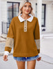 • FEATURES: Sweatshirt for women, loose fit, button down henley v-neck, striped color blocking, ribbed neckline, side slits, dropped shoulders, loose long sleeves, Y2K fashion style.